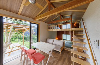 夜は快適なお部屋で休む、新しいキャンプstyleをお楽しみください。