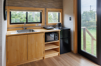 | 客室設備 | 冷蔵庫 / 冷暖房 / セーフティボックス / Wi-Fi完備(無料) ※キャンプ場の非日常を大切にするため、お部屋にテレビは設置しておりません。 |